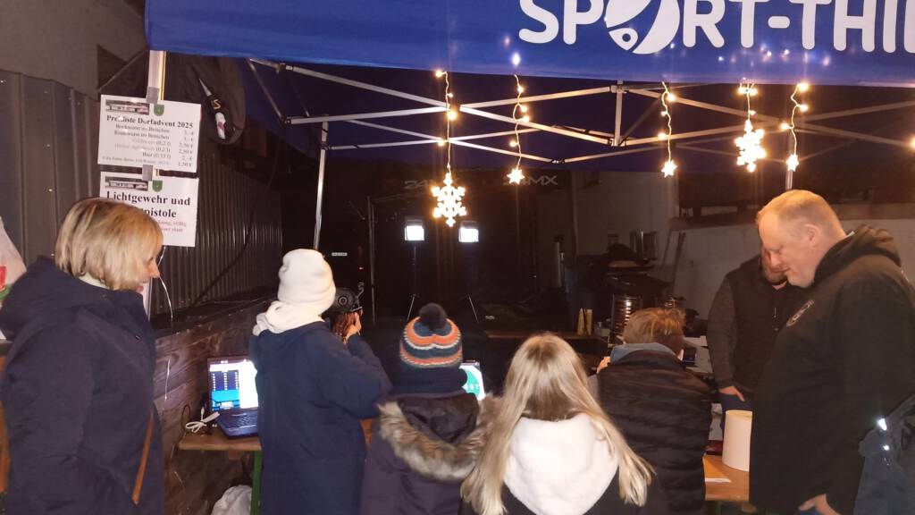 Am 29.11. fand im 2 Jahresrythmus wieder ein Dorfadvent rund um die Kirche statt. Der Schützenverein war auch wieder mit Kalt, Heißgetränken und Bockwurst am Start. Neu war dieses Jahr das wir unsere Lichtgewehranlage mobil dabei hatten um Interessierten das Schiessen mit Gewehr und Pistole näher zu bringen! Der Vorstand dankt allen Mitgliedern die beim Auf/Abbau, bei der Bewirtung und Standaufsicht tätig waren. Natürlich auch den Damen in Heike´s Glühweinküche!